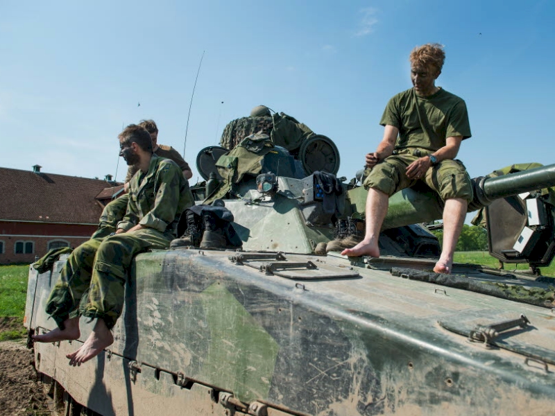 (Bilden: Stridspaus efter hårda duster i övningen Våreld 16, ”med syfte att öka vår förmåga att med markstridskrafter försvara Sverige och landets intressen.”)