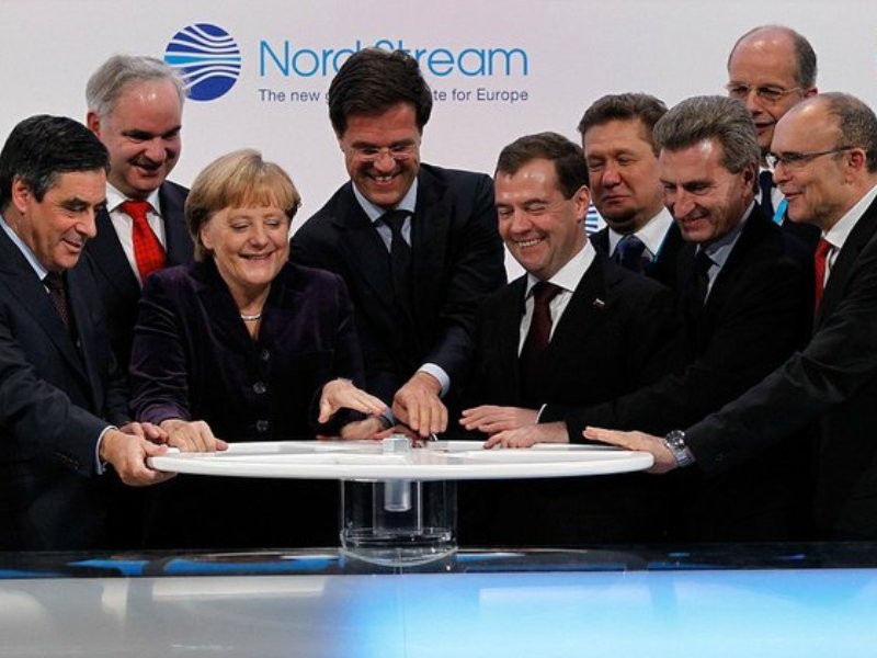 (Bilden är från öppningsceremonin av Nordstream 2011 med bl a Angela Merkel och Dmitry Medvedev. Något beskuren. Foto: kremlin.ru, CC BY 3.0 https://creativecommons.org/licenses/by/3.0/deed.en)