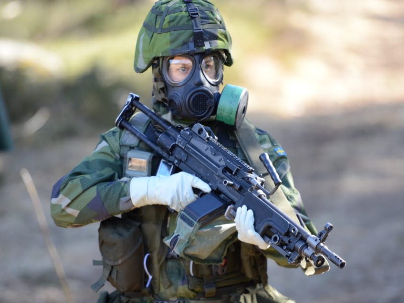 (Bilden är från ett annat tillfälle. ”Soldat ur CBRN-kompaniet, SkyddC.” Foto: Wilhelm Guldbrand/Försvarsmakten.)