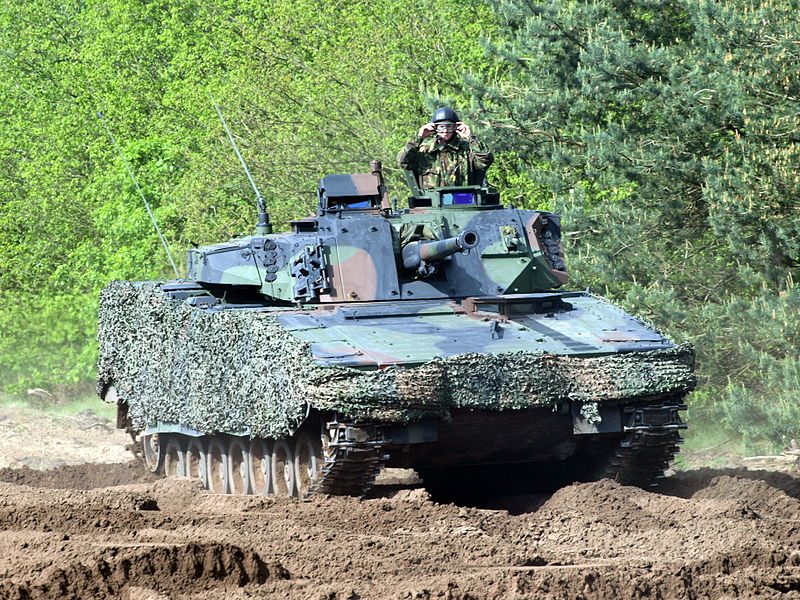 (Bilden visar en nederländsk CV9035NL med tilläggsskydd under uppvisning. Foto: AlfvanBeem, CC0 PD)