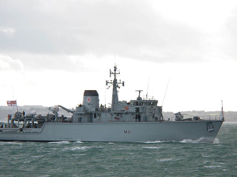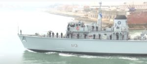 (Bilden: HMS Quorn (M41) på väg in till basen i Portsmouth ett tidigare år. Något beskuren bild. Foto: Brian Burnell, CC BY-SA 3.0 https://creativecommons.org/licenses/by-sa/3.0/deed.en. Filmen: Forces TV Youtubekanal.)