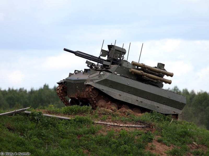 (Bilden: Uran-9, Unmanned Combat Ground Vehicle, UCGV, förevisad 2017. Foto: Vitaly V. Kuzmin, CC BY-SA 4.0 https://creativecommons.org/licenses/by-sa/4.0/)