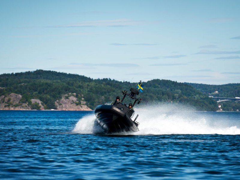 (Bilden visar Röjdykardivisionens Utsjö-rib för EOD, Explosive Ordnance Disposal, från ett annat tillfälle.)