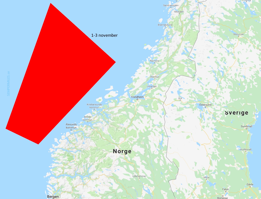 Varningen för de möjliga ryska robottesterna löper 1-3 respektive 6-9 november (se kartbilder nedan). Live Exercise-delen av övningen Trident Juncture pågår t o m den 7 november. Därefter vidtar en omfattande stabsövning, Command Post Exercise, som löper 14–23 november.