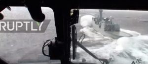 FILM: Denmark: Helicopter braves extreme North Sea conditions to land on moving war ship (1:14 min)