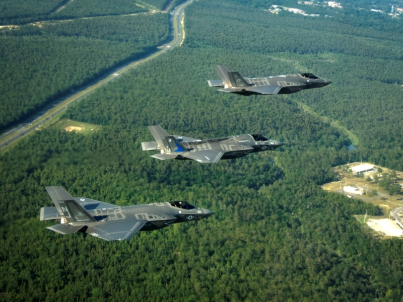(Bilden visar F-35A, F-35B och F-35C från ett annat tillfälle. Foto: Staff Sgt Katerina Slivinske, US Air Force, CC0)