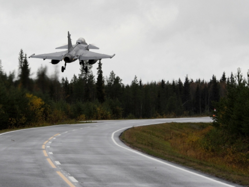 Jas-39-Gripen-landar-pa-vagbas-i-Finland