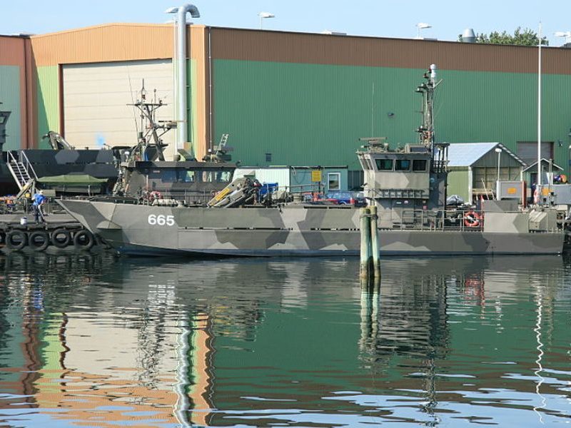 (Bilden är från Djupviks varv, Swede Ship Marine AB, från ett tidigare tillfälle och visar några andra båttyper. Ytterst en av försvarets trossbåtar. Foto: Patrik Nylin, CC BY-SA 4.0 https://creativecommons.org/licenses/by-sa/4.0/deed.en)