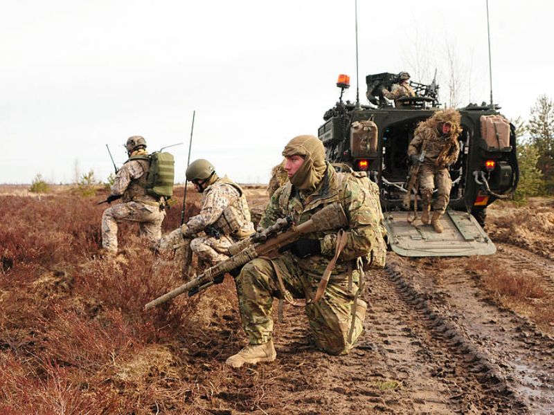 (Bilden: Amerikanska och lettiska prickskyttar vid en tidigare övning. Foto: Program Executive Office Soldier, CC BY 2.0 https://creativecommons.org/licenses/by/2.0/. Filmen: Latvijas armija, Youtube.)