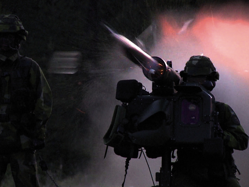 (Bilden: Firing RBS 70 NG. Foto: Thomas Dahlqvist, MMP Productions. Copyright Saab AB. Beskuren.)