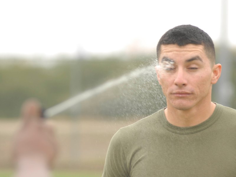 (Bilden: Övning med pepparspray från ett annat tillfälle. Något beskuren bild. Foto: Lance Cpl Robert W Beaver, CC0 PD.)