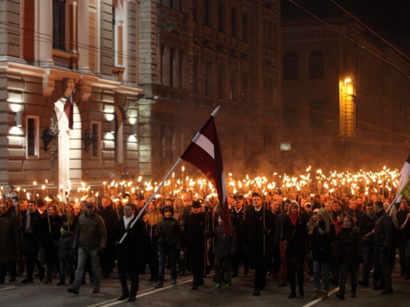 (Bilden: Fackeltåg genom Riga den 18 november 2013. Foto: Statistiķis, CC BY-SA 3.0 https://creativecommons.org/licenses/by-sa/3.0/deed.en)