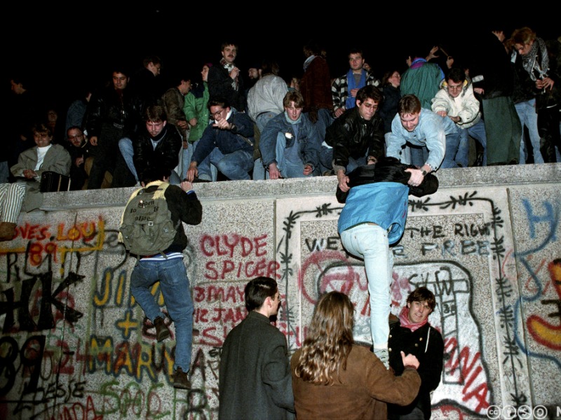 (Bilden: Ungdomar klättrar upp på Berlinmuren, november 1989. Något beskuren bild. Foto: Jørn H. Moen, Copyright Leverandør NTB scanpix, CC BY-NC-SA 4.0 https://creativecommons.org/licenses/by-nc-sa/4.0/deed.no. Filmen: Amazon Prime Video Deutschland Youtubekanal.)