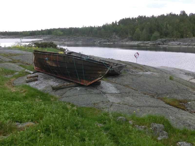 (Stora bilden: ”Skeppshamn, Åstön naturreservat, Timrå kommun”. Foto: PD, Public Domain. Lilla bilden är ur fotoserien ”Åstön. Repövning och matberedelser i köket.” Foto: Paul Lindgren/Sundsvalls museum. CC BY-NC 4.0 https://creativecommons.org/licenses/by-nc/4.0/deed.sv)