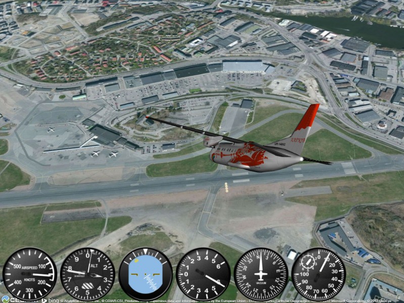 (Bilden är ur ordinarie miljön i GeoFS. Författaren i en An-140 över Bromma flygplats.)