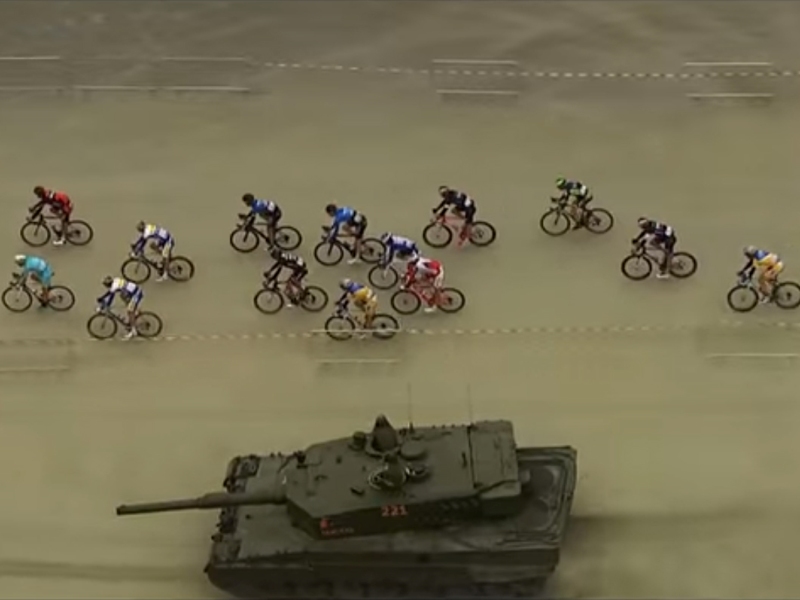 (Bilden visar ett annorlunda men oblygt härligt inslag på en av etapperna under ett tidigare år. Bild och film: ”2013-2015 Best of Arctic Race of Norway”, Amaury Sport Organisation – www.aso.fr)